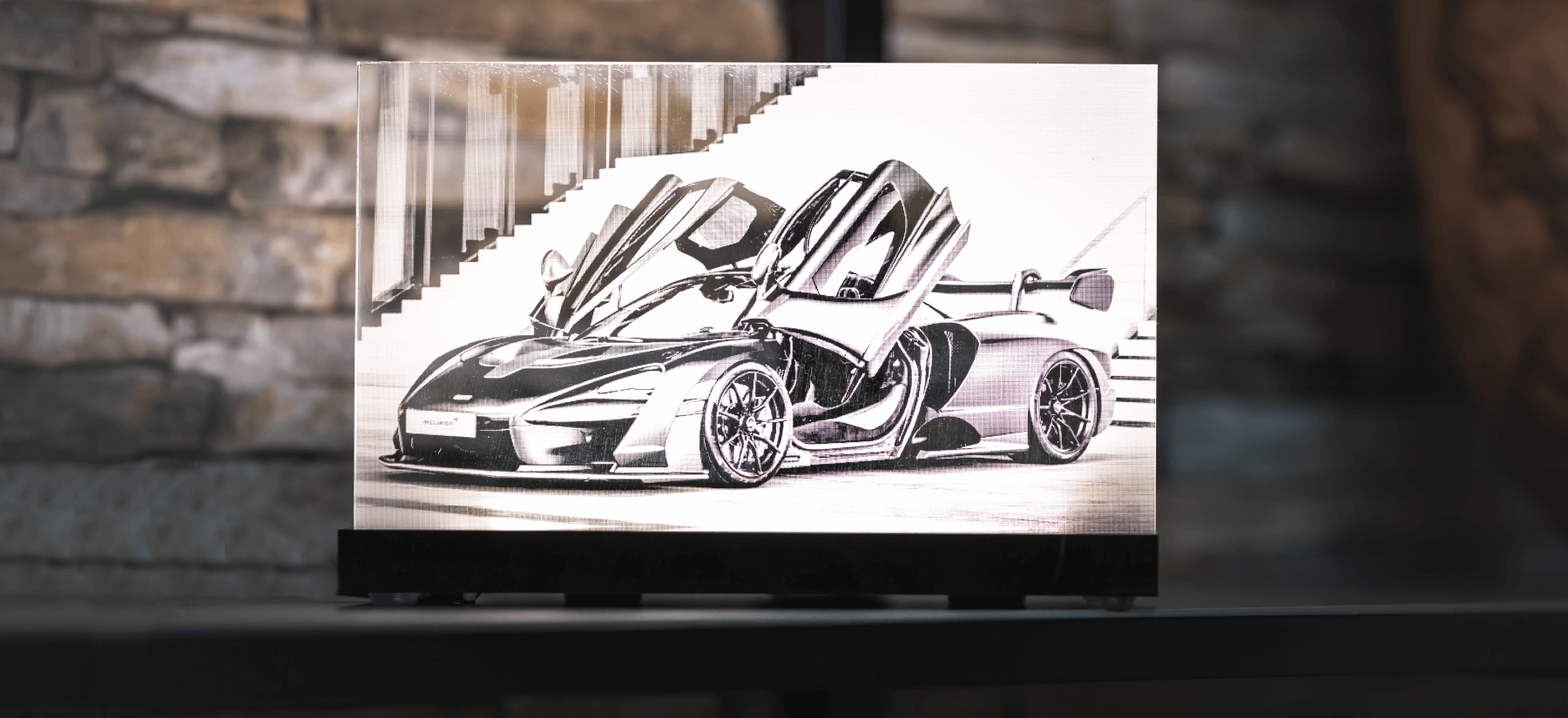 Der aus 4mm starkem Acrylglas gefertigte Acrylaufsteller Kontur beleuchtet, bietet eine tolle alternative zu einem normalen Bilderrahmen und ist immer eine tolle Geschenkidee. Die hochwertig eingearbeitete Gravur, erzeugt reale Bilder, welche durch eine Beleuchtung optimal in Szene gesetzt werden. Auch der aus schwarzem Acryl gefertigte Sockel ist ein optisches Highlight Der Aufsteller eignet sich perfekt für Schreibtische, Regale oder Nachtschränkchen. Das hochwertig verarbeitete Acrylglas und vor allem die Lichtkulisse verleiht Deinen Bildern eine tolle Optik und lenkt alle Blicke auf sich!
